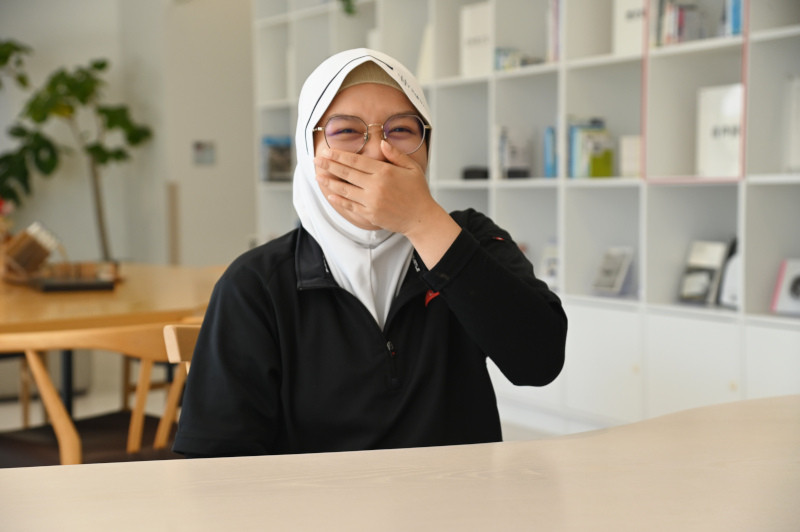 Selanjutnya, apakah bisa ceritakan tentang pekerjaan kalian berdua? Oh ya, hijab kalian kembaran ya. Bagus ya.